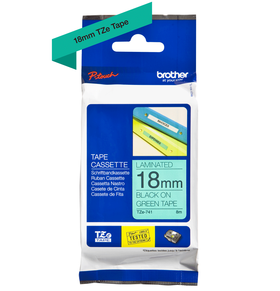 Laminated Tape Model: TZe-741 Tape Length: 8mtr Tape Size: 18mm